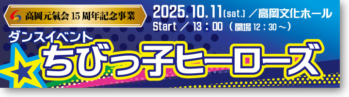 未来ある子供たち、高岡の将来を担う子供たちを応援したく、ちびっ子達が得意な事を沢山の皆さんの前で披露できる場を設けてあげたいと計画し、第1回ちびっ子ヒーローズを開催致します。